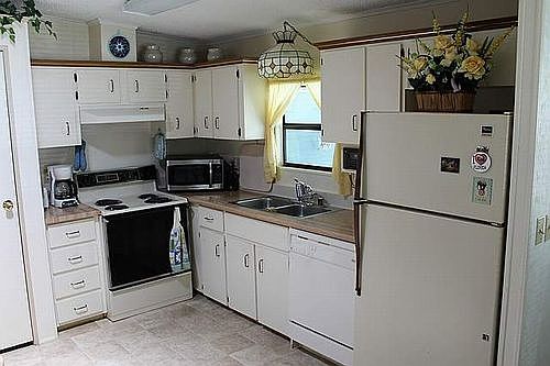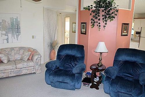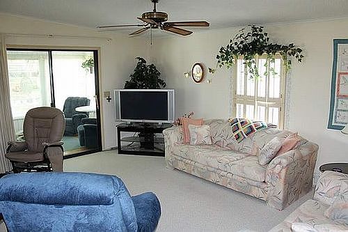 2BR 2BA 1188 SQ. FT. home, Fully Furnished Turn Key. This bright and sunny home features large windows and a spacious, open floor plan. Laminate floors, Extra large kitchen Island, Newer appliances, New high rise toilets and new vanities, New Fans and light fixtures, The Cathedral ceilings add to this open design. Large eat in kitchen and a dining area too. Large master suite with plenty of closet space. This home is tastefully decorated and has been immaculately kept. Large Windowed Lanai. Indoor Washer and dryer. Roof in 2015, Newer paint throughout. Beautifully landscaped and a large carport and extra large shed. Golf Cart Included.