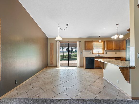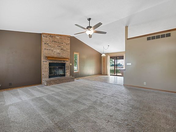 Welcome to this charming 4-bedroom, 3-bathroom home nestled on a spacious 1/3-acre cul-de-sac lot in the highly desired Goddard School District. Upon entering, you'll immediately notice the well-maintained interior flooded with natural light from numerous windows throughout. The vaulted ceilings enhance the open feel, complemented by a cozy brick surround wood-burning fireplace in the living room, perfect for relaxing evenings. The kitchen/dining combo boasts granite countertops, tile floors, an eating bar, and direct access to the large backyard deck, ideal for outdoor dining and entertaining. Kitchen appliances except refrigerator stay with the home. The primary suite features a walk-in closet and a convenient vanity area in the bedroom. The primary bath offers a tiled tub/shower combo. Two additional nice-sized bedrooms and a hall bath also with tiled tub/shower combo complete the main level. Downstairs, the finished daylight basement adds considerable living space with a huge family room featuring newer carpeting, providing ample room for gatherings and activities. A newly finished third full bath with a large vanity serves the basement, along with a fourth bedroom that includes double closets. Laundry facilities are conveniently located in the basement as well as a bonus room. Outside, the expansive backyard is fully fenced with both wood and picket fencing, offering privacy and security. Enjoy the covered deck, perfect for morning coffee or evening sunsets, and take advantage of the garden bed and storage shed for all your outdoor needs. The backyard fire pit is an added bonus, providing a cozy spot for gatherings year-round. Additional features include a two-car garage with a woodworking bench and shelves that remain with the home, offering plenty of storage and workspace. New water heater, new windows. Easy access to Kellogg to reach West side and East Side restaurants and shopping districts! Don’t miss the opportunity to own this meticulously maintained home with its desirable features and prime location in the Goddard School District. Schedule your showing today and envision yourself living in this wonderful property!