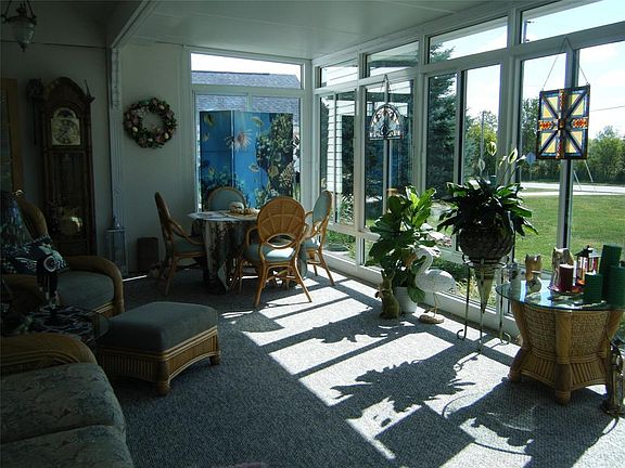 Looking for a beautiful country home with an outstanding landscaped yard? Would a pole barn and a 2.5 car detached garage with a loft for storage sweeten the deal? Then look no further!! This split floor plan with 2 bedroom, 2 full bath home offers a Great Rm with a woodburning fireplace, a heated & cooled Sun Rm for year around comfort, an updated Kitchen and Breakfast Rm and a den which currently being used as a 3rd bedroom.. The main bath has been tastefully updated with a claw foot bath tub. The one car attached garage was converted to a storage room with french doors but could be easily converted back if homeowner desires an attached garage.