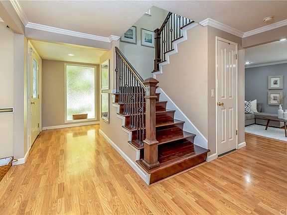 A place to call Home! Discover this lovingly maintained property that features very good sized bedrooms,wood flooring,bright & open spaces & a backyard pool. Immediately experience well-lit spaces that seamlessly flow from one room to the next. A wide open hallway w/ laminated wood flooring greets you upon entry.The living room is anchored w/ a centrally located fireplace fitted w/ travertine hearth & tile in-laid accent finished w/ a custom wood mantle.Full sized,double pane sliding glass doors enhanced w/ plantation shutters when pulled open provide direct views of the calming turquoise blue swimming pool.An intimate dining area w/ tray ceiling sits right next to the newly remodeled Kitchen.Clean lines & uncluttered quartz counter space lends form & function.Newer cabinetry frames the kitchen which is open to the family room.Wrought iron designed handrails on the stairway lead you to the upper level w/ the Master Bedroom on the left.A walk in closet is tucked away w/ shelves & hanging organizer.The well laid Master Bath has a newly remodeled wall tiled separate shower.The double sinks & the jetted tub is not to be missed.Temperature regulated heated floors is a pleasant surprise. Equally appealing are generously sized secondary bedrooms.Crown molding,recessed lighting,plantation shutters & double pane windows are further enhancements.The backyard pool will surely be your best place to hang out & spend countless hours this Summer! Stay Home to work or play...look no further!