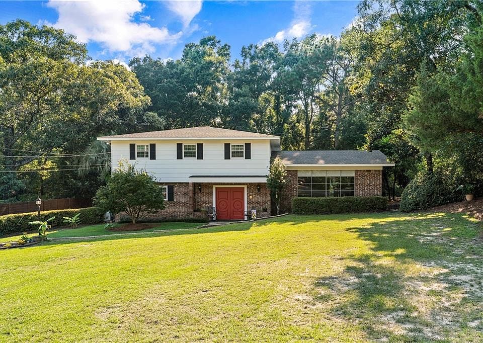 VRM: $299k-$325k. Home sweet home! Without a doubt one of the most unique homes on the market in Mobile County. This home has been meticulously maintained and well kept by it's owners of over 50 years. This home was built for indoor-outdoor living to entertain family and friends with your own wet bar inside. This Tri-level home is just over 2500 sqft and has 4 spacious bedrooms and 2 full baths upstairs and a half bath on the main level. Updates include: 2016: New A/C system inside and out. 2017: New gas heater furnace, new flooring in the den, office, laundry. 2018; All bathroom sinks and toilets replaced. New awning off master bedroom balcony, new black fence around the pool with two gates, Saltwater Ozone pool, custom designed with lights, a fountain and a umbrella holder. Landscaped the entire backyard. 2019 Horizontal yard fence on south side of the yard. 2021/2022:" New LVP waterproof plank in the living room, new pergola on the back porch customized by owners along with the deck with plenty of seating for guests. New roof and solar fans installs in attic. (2) American standard mini-split units installed for upstairs. Updated all ceiling fans and most light fixtures. 2023: A Stainless Steel refrigerator and dishwasher installed, exterior of home wood painted and sealed, majority of the interior was also repainted, master bedroom shower door replaced, new gas hot water heater as well! This home is just as good as new! Home Generator is inoperable and will be conveyed AS-IS. Come view this beautiful home before it's too late! Call your favorite agent today! Buyer or Buyer's agent to verify any information deemed important to the buyer or buyer's agent. 2023-09-26