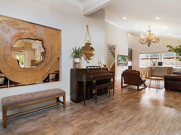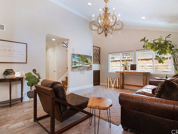 Craftsmanship, elegance and design. This cozy home sits on quiet cul de sac in the hills of Mission Viejo. Within walking distance to the MV Lake, shopping, parks, schools and restaurants. The entire home was renovated in 2012 and features quartz countertops, custom cabinetry, porcelain tiles, wrought iron railings, and high ceilings. In the garage you will find custom storage cabinetry and epoxy floors. The functional floor plan offers TWO MASTER SUITES, the main one upstairs and a secondary one downstairs. The downstairs bedroom can also be used as an office or bonus room. Each bedroom has been creatively designed and offers feature walls and ambiance lighting. The exterior offers stamped concrete driveway and walkways, travertine pavers in backyard, fire pit with built in seating, built in BBQ with outdoor sink and refrigerator, water feature and much more. The Landscape lighting creates perfect ambiance and the wooden trellis with vines growing on it completes an enchanting space you won't want to leave.
