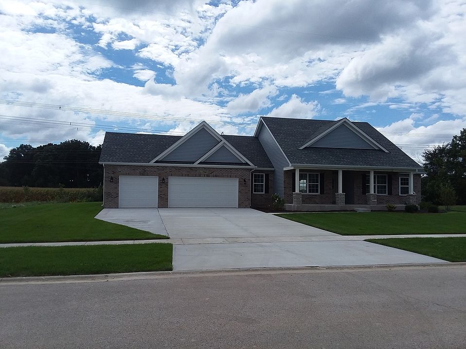 THIS SPECTACULAR 2500 SQ FT RANCH HAS 3 BEDROOM 2 BATH 3 CAR GARAGE AND IS READY FOR OCCUPANCY YOU WILL FALL IN LOVE FROM THE STREET THE LARGE FRONT PORCH WELCOMES YOU INTO THIS OPEN FLOOR PLAN~ THE BREATHTAKING DISTRESSED HARDWOOD FLOORS FLOW THROUGHOUT THE FORMAL DINING ROOM KITCHEN AND FAMILY ROOM~ THE HUGE KITCHEN WITH EXTRA LARGE ISLAND ALL TOPPED WITH GRANITE WILL MAKE EVEN THE PICKIEST OF COOKS HAPPY~ MASTER SUITE WITH LARGE WALK IN CLOSET AND OVER SIZED SHOWER ON SEPARATE SIDE OF THE HOME MAKES IT A PRIVATE RETREAT ~ THE BASEMENT HAS ROUGH IN FULL BATH FINISH THE BASEMENT AND ADD 2500 EXTRA SQUARE FOOTAGE MAKING THIS A 5000 SQUARE FOOT HOME. THERE IS A FULL CONCRETE AREA IN BASEMENT TO TURN INTO A WINE ROOM,SAUNA, STORM SHELTER.~ AND NO REAR NEIGHBORS ~ GREAT SCHOOLS AND EASY ACCESS TO EXPRESS WAY