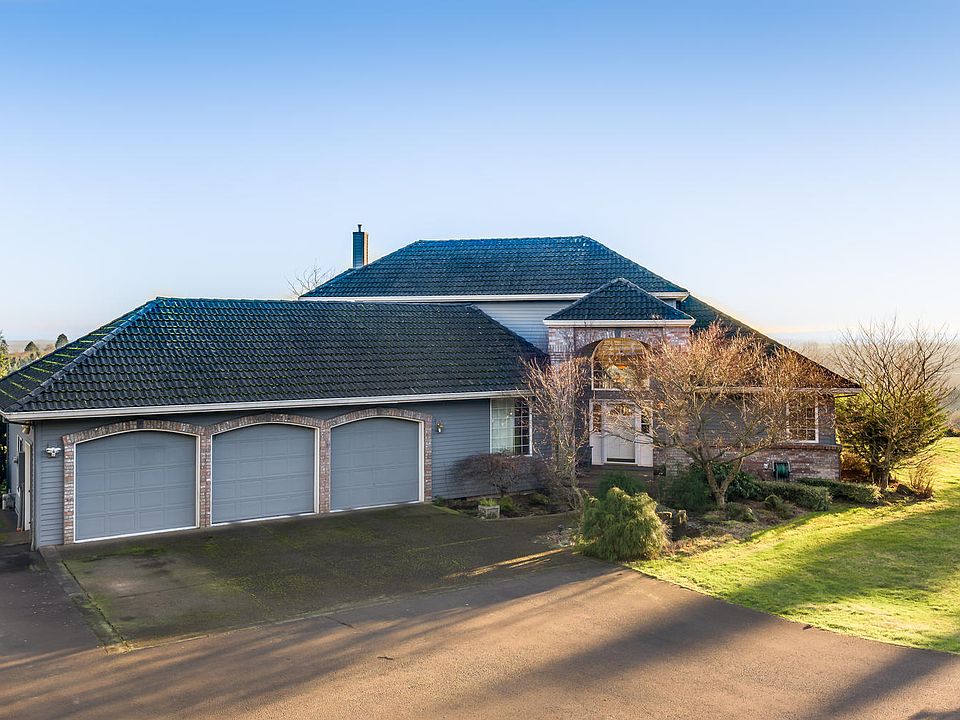 Tree lined paved private drive leads to Panoramic views and gorgeous custom built home on 10 acres. Immaculately maintained, Riding trails, Horse barn stalls, valley views, fenced pasture, Timber tax deferral. 500 ft elev; mixed jory soil, 12-15 degrees S. facing slope for 3 ac of vineyard potential. Minutes to wine tasting and the Allison Oregon's highest rated inn and spa. 45 minutes to downtown Portland.