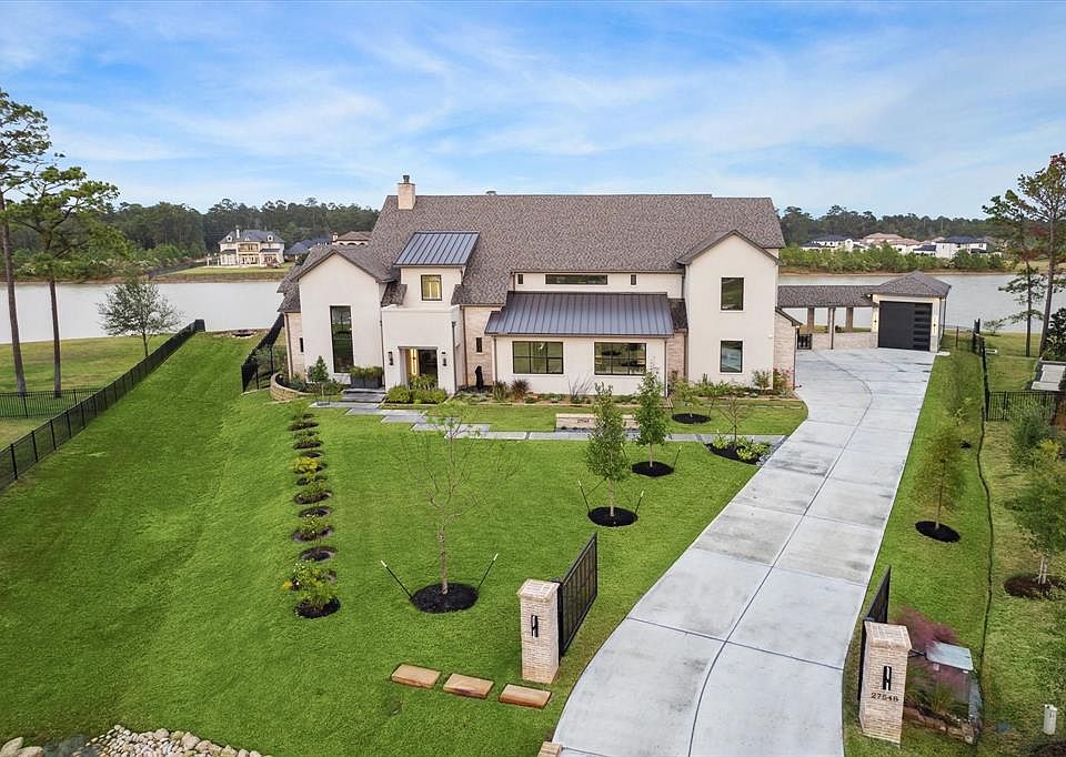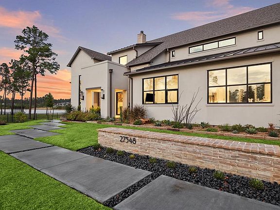 Incredible custom home on gorgeous waterfront cul-de-sac lot. Incredible attention to detail. Four car garage and separate RV/Hobby garage can accommodate two plus cars or large RV. Luxurious pool with spa and fire pit, downstairs game room is perfect for entertaining. Primary Suite features spa-like bathroom and large two story closet. Second bedroom and study downstairs, as well as enormous utility room are just a few of the great features of this modern, open floor plan. Media room, fitness room and additional bedrooms located upstairs. Gourmet kitchen features high-end appliances, built-in refrigerator and oversized island. On-trend and state of the art amenities. This is the one you have been waiting for.
