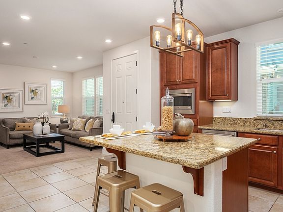 Wexford at Irongate! Desirable North facing front door-As you enter the home through the quaint porch and foyer, you will find a beautiful open concept floor plan with the gourmet kitchen opening up to a dining room and family great room-Living room complete with plush carpeting and recessed LED lighting-Kitchen offers tile flooring, stainless appliances including gas range, island with designer light fixture, and filtered water at the sink-Formal dining area with sliding glass doors leading to rear patio-Relaxing master bedroom suite features a luxurious en suite shower with bench and large walk-in closet-Two-car fully sheet rocked, taped, and painted garage, features fluorescent overhead light-Category 5 high-speed telephone wiring in all bedrooms, living room, and kitchen-Other exceptional features include Nest thermostat, water softener, keyless garage door, tankless water heater, interior fire sprinklers, and two-inch blinds-Solar power lease in place for lower utility bills!
