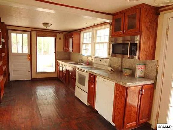 If you like antiques, you will find this home perfectly suited for them. Enjoy the charm of this 1950's farm home nestled on almost 7 acres of exceptional privacy. With 1744 sq ft, 3 Bedrooms, den and living room there is ample storage space. The kitchen is modernized and offers granite counter top and back splash, new appliances, refrigerator, electric stove, stainless microwave and dishwasher, lots of cupboard space, and built in shelving and storage cabinets. Leading from the kitchen is the entrance to the sun room with walls of windows, Sunshine Bright. The living room is spacious and also has built in shelving and a stack stone wood burning cozy fireplace for winter nights. The upper level offer two additional rooms that could be used as bedrooms, office space or craft area. Also on the property is a 32 x 32 barn and additional out storage building. Lots of Land and Trees, Wooded and Private! Convenient to Sevierville, and Knoxville. Just minuets to Gatlinburg, Pigeon Forge, and all area attractions. Sq. footage is taken from tax records and is estimated.