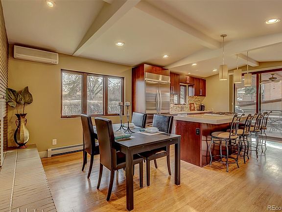 Fantastic updated (2014) mid century modern home, Located in exclusive Applewood Mesa (Unincorporated JeffCO) Close to Biking/Hiking trails. Applewood golf course/Rolling Hills close by. Highly rated schools in area, EZ access to I-70 and Denver West shopping. 2 Story Entry with grand 8' double glass doors, Bamboo flooring on main level, Cherry cabinets solid surface counters in gourmet kitchen with stainless appliances, Covered patio right off kitchen has view of private vintage in ground pool (new filter). 2 way fireplace between living and Dining area (Gas is already run if you choose to add insert). Large Master Suite with 5 piece bath, New custom knotty alder closet/bookcases with new carpet throughout, room for exercise equipment or sitting area in master- expansive deck off master. 2nd bedroom on upper floor could be a child/nursery or maybe even a private office....2 other bedrooms on the Pool level of the home for children/guests with large full bath between bedrooms. New light and bright laundry/mudroom area with cabinetry, folding table conveniently located right off the garage. Basement is finished with surround sound and TV area in large room with fireplace and 3/4 bath. Flex/Utility area is finished with seasonal closets and is currently staged as an office. Corner lot is surrounded by beautiful 6'+ privacy hedge.