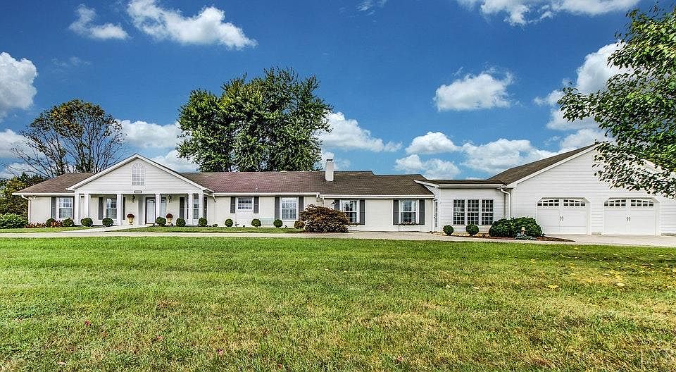 Stately and elegant home with the beautiful backdrop of the Peaks, this sprawling brick ranch is perched on a gentle rise with nearly 4.5 acres and truly spectacular views! Beautifully well-kept, this home offers 4 BR and 3 1/2 baths, a sunken living room, formal dining room with fireplace and access to deck, updated eat-in kitchen, and a generous, classic family room, complete with stone fireplace, office space and built-ins. Large laundry room just off the kitchen, separate suite for guests, lovely sunroom with views from 2 sides and the huge, separate, heated work shop are some of the extras you rarely find. If you have ever dreamed of one level living, convenient to town, with inspiring views, don't miss this! Adjacent lot can be sold off by the buyer of entire parcel.