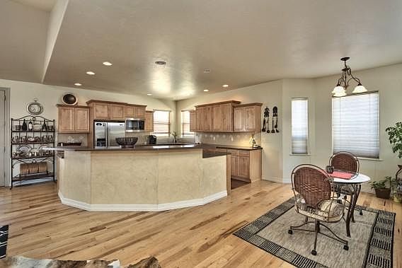 This North Grand Junction home shows pride of ownership and it has so many incredible features that you really have to see it to believe it. The inviting, open floorplan on the main floor has high ceilings, a gas fireplace, and a formal dining room, plus a cozy tv area and access to a large covered patio. Downstairs, an enormous family room has potential for so many uses. And the two bedroom, full bath apartment has exterior access and its own laundry room, so it makes a perfect in-law set-up or rental apartment. In addition, you'll find an attached 3 car garage, and a detached RV garage with storage shelves that can hold at least 4 cars, or an RV with plenty of room left over. The backyard is like a sanctuary with beautiful landscaping and a pond that is shared with the neighbors. This is a wonderful property with so much to offer.