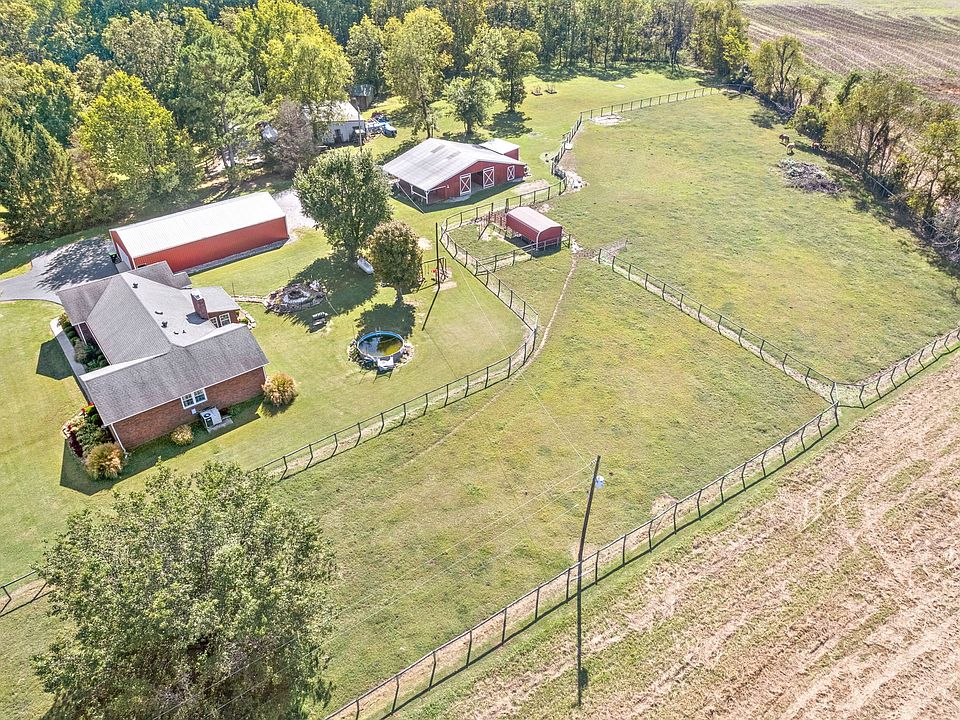 Beautiful brick ranch home nestled on a mini horse farm with 4 acres of lush pasture. This charming property features 3 bedrooms, 2 baths, a spacious family room, and a large kitchen. The primary bedroom boasts a walk-in closet, and the living room offers built-ins for added convenience. Enjoy the elegance of a gorgeous winding paved driveway leading to a 2-car garage with an extra storage closet. Perfect for equestrian enthusiasts, the property includes a 5-stall barn with a tack room, hay storage, and both electricity and water. The 7-strand high tensile fencing, which can be electrified, ensures the property is cross-fenced for easy management, complete with a loafing shed for shelter and a pond. A 30x60 shop provides extra space for projects, while the fire pit area and above-ground pool are perfect for relaxing and entertaining. This home offers the perfect balance of comfort and country living!