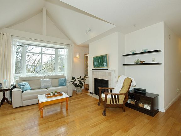 This is it! Your new home in this well-maintained building with only 38 units. Bright, cheerful penthouse vaulted ceilings catching the morning sun to lift your spirit. Updates such as engineered hardwood floors in the living room, dining room and hallway and California Closets. Great features include radiant heat, 2 balconies, storage locker, 2 parking stalls. This unit has very rare to find 15' cathedral ceilings in 3 rooms; unique in the building and in general. Very friendly, walkable area for everything you need, including schools, daycares, Community Ctr. and Neighborhood House. Best location only 1/2 blk from the Arbutus Greenway, close to transit and new subway. Cat in the house. Pet friendly, non-smoking building.