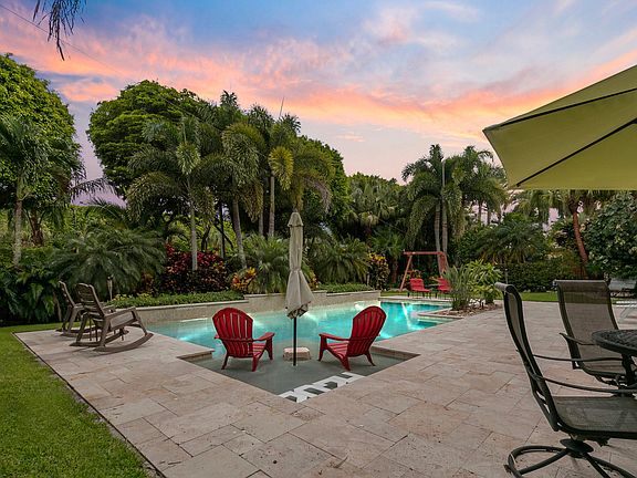 It is certainly time get into this amazing family home where your own paradise and yet normal day-to-day can happen easily. This home has.... Lush, tropical landscape that is aesthetically pleasingly very private and safe for your children, including fencing, available to put around the pool area. Glass risers on staircase that provides a beautiful background for taking pictures of special occasions. Large private laundry room on second floor with plenty of room to fold and hang clothes with lots of great storage. A movie room that's dark and cozy with six built in reclining leather chairs, pop your popcorn right in the room and enjoy your favorite film. First floor guest room with full bath great for guests to be separate from your upstairs, as well as who prefer not to use the stairs. Owner suite has an area to perk your morning coffee and have your 1st cup before even going downstairs Including a flex room that could be used as a sitting room, workout or yoga room , reading room, office, ...use as you wish. The layout of the home is perfect having the bedrooms upstairs in private area where late night entertaining will not disturb the children sleeping. Amazingly large kitchen island with sink right in the middle so even if dishes need to get done, you're still able to enjoy the people around the island and watch the game! Four car garage which can be used for all your cars or as useful space for kids gymnastics mats, Bicycle storage, storage of holiday decor, work out area ...etc. Driveway has additional parking space for when those teenagers start driving and you need more room for cars in the driveway . First floor has an area that can be used for a formal living room or you could use it for an office or music room or even a gaming room perhaps put in a pool table, lots of options. In this room there is also a closet under the staircase for lots of great storage.