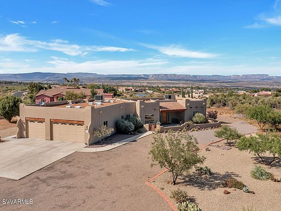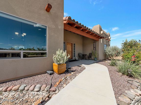This one checks all of the boxes on your wishlist. Impeccably kept Santa Fe home, located in Cottonwood's Foothills with panoramic views in every direction. Sellers are first and only occupants and have maintained the property inside and out with high pride of ownership. The interior is a pleasing mix of light, beamed ceilings, custom window coverings, tile floors and many high end finishes. Granite and stainless steel appliances in chefs kitchen plus outdoor kitchen including BBQ, and plenty of room for a pool and casita. The large office features expansive windows with views of the Sedona Red Rocks/Mingus mountain and a separate door to covered back patio. Perfect for those who work at home or need a space for arts, crafts or Zen moments.