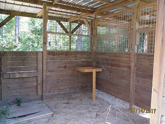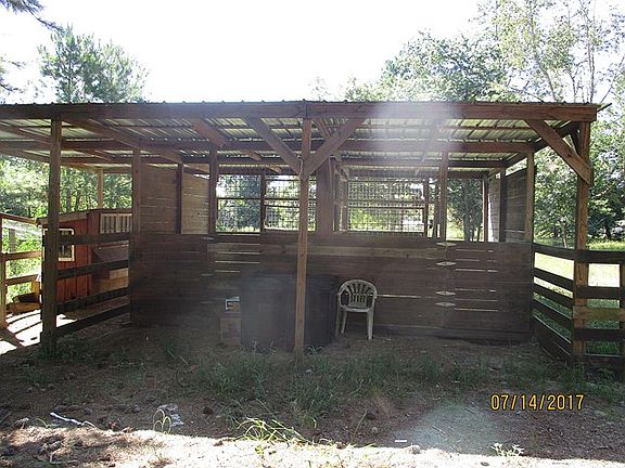 Established mini horse farm on 11.19 acres. Half of the land is planted pines-other half is pasture. There is a 2 stall barn, several fenced paddocks, a chicken coop, a fenced area for chickens or dogs or pigs, etc and an established garden spot. There is also a storage building with water and it's own septic tank - add electric and you could have a "tiny" house to rent out!! There is another large building with electric a/c that could be used as a playhouse, office or man cave. Two other out buildings are being used for storage and need some work. The house has a covered front porch as well as a large back deck. It has 2 living areas with one wood burning fireplace. Large kitchen with island and all appliances remain! Dining area off den as well as a bar area. Nice open floor plan is perfect for entertaining friends and family! Garden tub in MBA with separate shower and double vanities - all of this at a great price!!