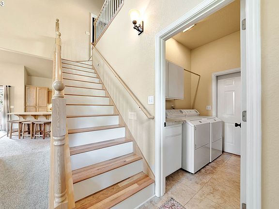 Experience the best of modern living in this stunning 3 bedroom, 2 bathroom home located in a quiet Santa Clara neighborhood! This turn-key property offers new carpet and flooring, a new roof and furnace/heat pump for year-round comfort. Enter to find soaring vaulted ceilings and lots of natural light beaming through as you cozy up around the gas fireplace. The open concept kitchen is equipped with stainless steel appliances, breakfast bar, tile travertine floors and counters with plenty of storage space. Enjoy your own little oasis in the spacious main level primary bedroom featuring a walk-in closet, jacuzzi tub and shower plus access to the New Timber Tech deck via your own slider door. Upstairs offers a Bonus possible 4th bedroom, office, or den! Step outside to appreciate the large landscaped private backyard complete with new storage shed - This yard is perfect for entertaining or gardening! Plus you'll have under ground sprinklers and gated RV or boat parking! With easy freeway access nearby as well as shopping & eateries in close proximity you won't want to miss out on this amazing opportunity!