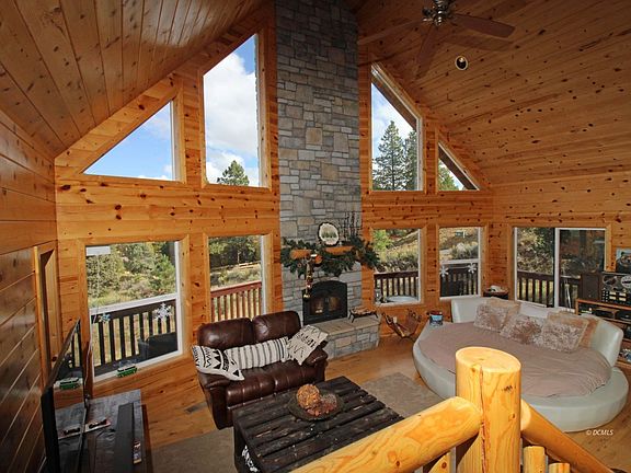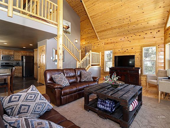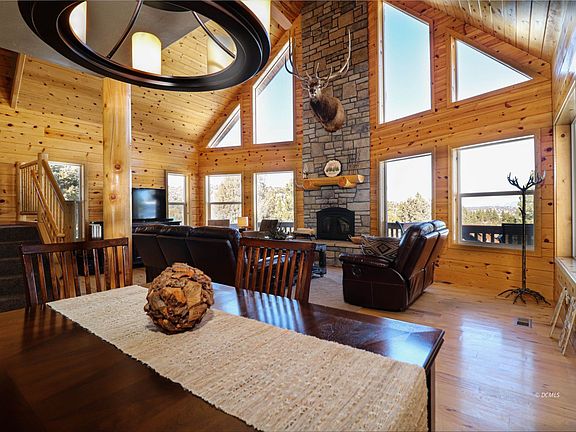 Gorgeous Chalet Style Cabin in Elk Ridge! Come home to the mountain community of Elk Ridge Estates and this beautiful, well cared for Chalet style cabin! Located on a wooded corner lot, you will enjoy the views of the distant pink cliffs to the northeast from your deck and even from the sitting nook upstairs adjacent to the master suite. Bright, open kitchen features loits of storage and is painted in a pleasing warm gray tone with newer countertops. All stainless appliances. The floor plan is open to the main living space and dining area, all which take in the majesty of the mountain setting with the wall of windows that let in natural light. A half bath and laundry room round out the main floor. Upstairs, the master suite has a walk in closet, separate toilet area, and slate accented shower. Downstairs, there are two more bedrooms and a full bath. The attached garage has plenty of room for your mountain toys. Most furnishings included. Elk Ridge features year round access and chip-sealed roads so no muddy roads. Take a look today at this gorgeous cabin. Dual water heaters & forced air furnace. Wired for AC. Outdoor fire pit. Pines grace this very usable lot; pull through driveway for easy access during all four seasons.