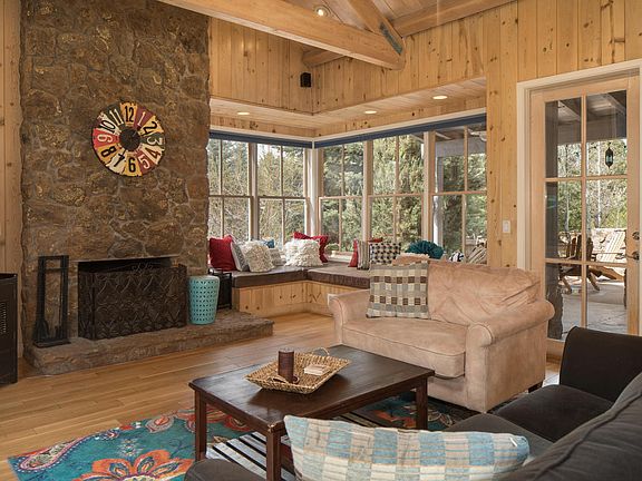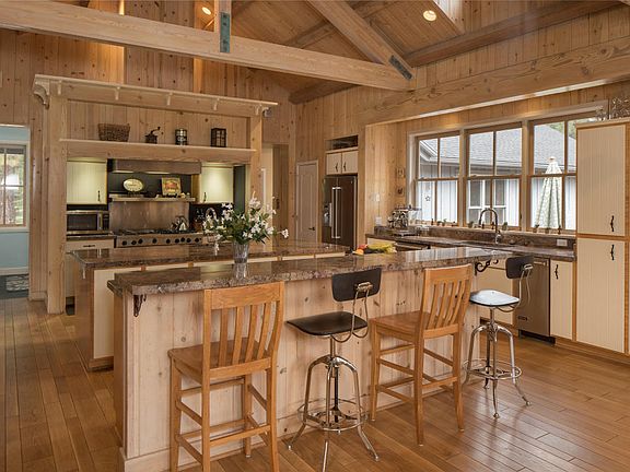 This gorgeous, iconic house in Equestrian Estates is on 1.30+ acres with park-like landscaping. The unique home is a little French Country, with a splash of Industrial. Beautiful wood walls, sky-high ceilings, beams, and hardwood floors in most rooms. This is an ideal home for those that love to socialize and host large parties, but who also enjoy the privacy and warmth of a cozy mountain home. A stone fireplace in the living room invites relaxation, complete with a wall of charming window seats. The incredible dining and kitchen spaces are open and vast, and flow into the central Great Room. The kitchen has Viking appliances, including a double oven with 6 burners, and an ample amount of storage and granite countertops.The lovely master bedroom is large with windows and a door that opens up to one of the three outdoor living spaces. The master closet is really a room of its own, with built-in shelves and drawers, and a granite island, too! The master bath has two vanities in granite, a walk-in shower, footed bathtub and even a mini chandelier!Located on the opposite side of the house is a comfortable den and two nice bedrooms. The quarters include a bath with two vanities in granite and a tub/shower combo. Great as an split-room area away from the main floorplan!The secluded and enchanting Tower Room has an additional area (currently used as a bedroom) and bath, perfect for out-of-town guests, or as an inspiring studio or workspace.Storage space is plentiful! This property boasts an attached two-car garage, a detached extra-long one bay garage, a tack room, and three stall barn.This stunning, one-of-a-kind home has so many features that must be seen in person! Don't miss out on this rare opportunity. Please call for your showing today!