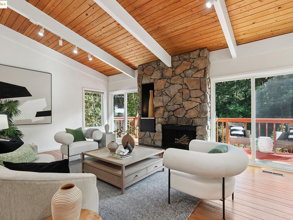 Nestled on a secluded cul-de-sac in serene Piedmont Pines, this rare single-family home blends Mid-Century charm with modern updates. With only nine homes on one side, the opposite side offers a picturesque wooded landscape and lush canyon views. This sun-drenched 3+ bed, 2.5 bath home features 1,984 sq. ft. of open living space*, where expansive sliding glass doors lead to spacious decks overlooking the canyon. The bright, open floor plan includes two en-suite bedrooms—one on each floor, perfect for privacy or multi-generational living. The spacious kitchen opens to a fenced patio and yard, ideal for entertaining. The oversized, level-in garage (647 sq. ft.) fits two cars* plus room for a gym, office, or workshop. Experience tranquil living with breathtaking nature views in this truly special home. Just minutes from Redwood Regional Trails, Roberts Regional Recreation Area, the Chabot Space & Science Center, and Montclair Village. *Per measured floor plan. **Neither the seller nor the listing agent has investigated or verified the accuracy of these sources of information; buyer to investigate.