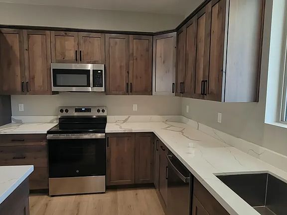 Gorgeous 2000 sq ft , Three Bedroom, three bath, three car tandem garage home.Low-E Dual Pane windows with drywall wrap. Additional features: Sliding door to patio with covered paver patio. 2 panel, square top, paint grade 8' tall interior doors, 3" casing and 3" base. Pure White ceilings, walls, doors, case and base Stained shaker style cabinets in kitchen with 36" uppers. Stained shaker style cabinets bathrooms, & laundry room. Granite countertop in kitchen with subway tile backsplash Cultured Marble countertop in laundry with 4" backsplash Cultured marble bathroom tops with wide edge, 4" backsplash and rectangular sinks. Cultured marble master bath shower pan and wall wrap up to 7' tall. * Guest bath cultured marble wall wrap up to 7' tall above white steel tub. Engineered vinyl flooring in entry, kitchen, dining, and hallways. Porcelain tile floors in baths and laundry room. Carpet in bedrooms, closets and living room. Custom Lighting fixtures. Delta plumbing fixtures. Stainless steel kitchen sink and faucet. 40-gallon, natural gas, hot water heater 12' Slider in great room High-efficient gas furnace. Stainless Steel appliances. Belgard paver driveway, entry walkway and patio.