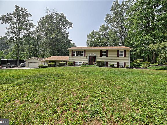 Welcome to this spacious and freshly painted 4-bedroom, 3 full bath split foyer home situated on a private and serene 1.07 acr, partially wooded lot. With over 2200 sqft of living space, this captivating residence offers the perfect blend of comfort and functionality. The upper level features three inviting bedrooms, including a master bedroom with an en suite bath for added privacy and convenience. An additional full hall bath serves the remaining 2 bedrooms, ensuring comfort and convenience for everyone in the household. The kitchen is a true highlight, boasting elegant black granite countertops that perfectly complement the modern aesthetic. The living room and dining room combination provides a versatile space for entertaining or relaxing, complete with two accent walls that add a touch of style. Hardwood flooring enhances the overall warmth and appeal. The lower level is sure to impress with its large family room, complete with a cozy woodburning fireplace featuring a heatilator for added warmth during colder months. An additional, 4th bedroom with an attached full bath offers flexibility and can serve as a private guest suite or a comfortable space for a growing family. A bonus room/den provides extra room for a home office, playroom, or hobby area. The laundry room, equipped with a laundry tub, adds convenience to your daily routines. The lower level also provides a walkout to an oversized 2-car attached garage, ensuring easy access and an abundance of storage space. Step outside and be equally delighted by the additional oversized 2-car detached garage, perfect for car enthusiasts or as a workshop area. The additional oversized shed is the perfect place to tuck away your outdoor equipment and tools. The expansive 1.07 acre lot offers a peaceful retreat, with a portion of the property beautifully wooded to provide privacy and a connection to nature. The roof, a vital component of any home, is only 5 years old, offering peace of mind and long-lasting protection. Don't miss this rare opportunity to own this stunning split foyer home that combines comfort, style, and a private rural setting that is truly hard to find! Schedule a showing today and discover the possibilities this property has to offer!
