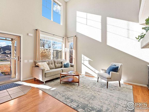 There is a lot to love about this home and location, but THERE ARE THREE THINGS I PERSONALLY LOVE: 1. This townhome is south-facing, and the living room has two-story ceilings & windows both high and low. This means THE LIVING AREA IS FILLED WITH NATURAL LIGHT. 2. Most townhomes in this neighborhood and around town have more of a cramped feel - not this one. Here, you have a LARGE, OPEN GRASS AREA RIGHT OUT THE FRONT DOOR. The 'feel' of this townhome is special and different. 3. This home is in what I think is the best part of the neighborhood. This is ONE OF THE QUIETEST SPOTS IN HARVEST PARK, yet it's ONLY A BLOCK AWAY FROM THE POOL & CLUBHOUSE, and there is a TRAIL THAT WINDS THROUGH A BEAUTIFUL NATURAL AREA JUST BEHIND THE HOMES ACROSS THE STREET. On top of these things, most appliances have been replaced, the carpet is only three years old, and the two-car garage is huge! The unfinished basement has served nicely as an additional bedroom and gym, and you have 7 'pocket' parks and larger Harmony Park, all within the neighborhood. The HOA fee might seem a bit high, but when you consider everything it covers (water, exterior maintenance, trash, hazard insurance, and the pool & gym, among others), you'll start to understand it's money you would otherwise be spending. This home is in great shape, the location is fantastic, and if you see it in person, you'll realize the 'feel' inside and out is different from the competition.