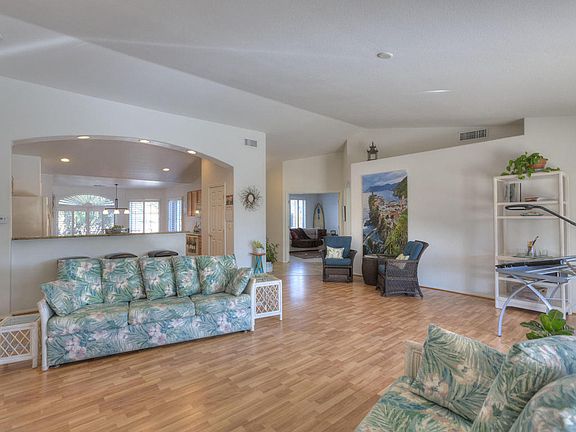Expanded Laredo on an incredible lot with natural desert and mountain views. This home has all the popular options with bay windows in the master and guest bedroom, expanded breakfast area, 2' extension on the East side of the house, 6 panel doors, roll-outs in the kitchen, granite countertops and 24' extended garage. Saltless water softener, plantation shutters, an enclosed front courtyard, flagstone patios at the front and rear round out the upgrades on this great home. Quail Creek's amenities are second to none with pickle ball, 27 holes of golf, Creative Arts and Technology Center, Madera Clubhouse, Anza Athletic Club, Resort Style Pool & separate lap pool, Bocce Ball, Tennis, Grill & Lounge and even a dog park - all within the gates of Quail Creek!