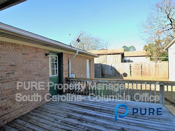 Lovely all brick ranch style home located in West Columbia. This home has a nice sized fenced front yard. The fenced backyard, has a large wood deck with ceiling fan and storage building. Inside we have hardwood floors throughout. Formal dining room with chandelier off foyer. Formal living room features fireplace, ceiling fan, and slide door that leads to the back deck. Family room off kitchen. Lovely kitchen features fridge, dishwasher, garbage disposal, smooth top stove and built in microwave. Washer/Dryer connections. Full bathroom off hallway has large mirror, double vanity sinks, and shower/tub combo. Master bedroom has a ceiling fan, closet, and master bath has a single vanity with stand-up shower. Two additional bedrooms off hallway. Additional room off bonus could be used as 4th bedroom. Convenient to I-20, I-26 and Columbia Metropolitan Airport. Lexington County School District 1. All PURE Property Management residents are enrolled in the Resident Benefits Package (RBP) which includes renters insurance, HVAC air filter delivery (for applicable properties), credit building to help boost your credit score with timely rent payments, $1M Identity Protection, move-in concierge service making utility connection and home service setup a breeze during your move-in, our best-in-class resident rewards program, and much more! More details upon application.