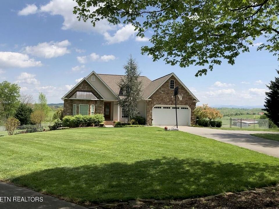 MOUNTAIN VIEWS! This custom home on 3 acres is centrally located in White Pine TN. Just minutes off I-40! This home checks all the boxes! Step into the foyer through the grand 8' front door. Upstairs you have 3 bedrooms and 2 baths, a formal dining room and a eat in kitchen, a four seasons room and a huge deck for entertaining. The primary bedroom has a ''morning'' room to enjoy your coffee or use as a home office. This room has an electric fireplace and a great view of the mountains. End your day with a soak in the tub as the mountain view melts the stress away. 10' ceilings in the living room and primary bedroom with 9' ceilings in the remaining rooms give this home that elegant feel. Stainless steel kitchen appliances stay. Oak hardwood in the main living spaces with tile in the wet areas. Garage spaces for 3 cars, 2 up, 1 down! The property is on a dead end street and there is not an HOA! Need more room? Downstairs there is an additional living space that has been successfully used for overnight rental. The front of this property is private and wooded, while the back of this property opens to nearly 180 degree mountain views. If you love the mountains, this home is for you! 10 Minutes to Dandridge, 35 minutes to Knoxville, 35 Minutes to Sevierville, 20 minutes to Morristown, and just 30 minutes to North Carolina. Low county taxes and no city taxes! This home truly does have it all!