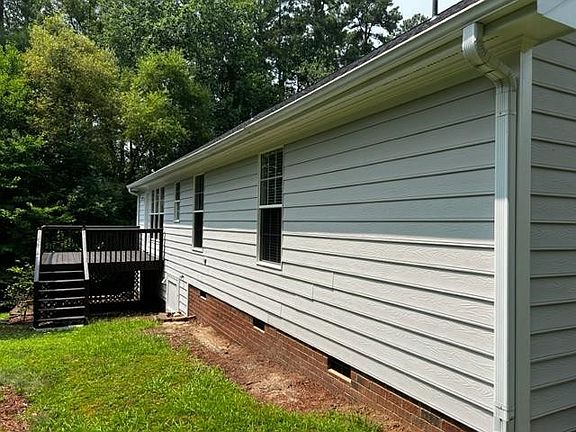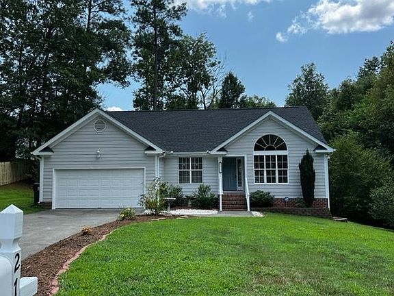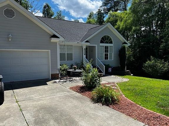Reduced! Brand new stainless stove, updated bathroom fixtures and freshly painted inside and out. New roof and new HVAC in 2022! Quiet shaded lot which backs up to nature preserve. No neighbors on the right or behind this house. Paved driveway leads to 2 car garage! Newly painted deck on back of home to enjoy the outdoors. Inside enter to a huge great room with vaulted ceiling and fireplace with marble surround. Open eat-in kitchen with pantry and triple windows to enjoy view of backyard and deck. Primary suite with walk-in closet, vaulted ceiling and separate tub and shower. Perfect location for commute to Youngsville or Durham. Sellers are offering $3000.00 in closing costs! Call today!