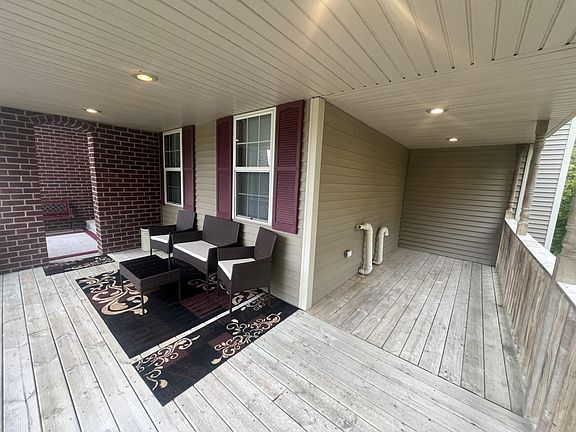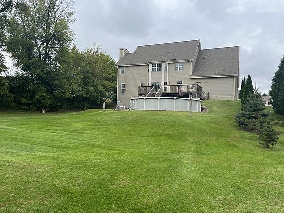Impressive 4-5 BR, 3.5 BA home on a wooded .60-acre lot. A wraparound covered porch adds charm and character. Dramatic 2-story foyer with elegant staircase leading to all the bedrooms on the upper level, where you will also find the convenient laundry room. Double doors off the foyer open to a spacious formal dining room. Large eat-in kitchen with stainless steel appliances, abundant cabinetry, pantry & patio doors to multi-level deck, above-ground pool & hot tub. Pillared archway connects the kitchen to the sunken great room with fireplace. Finished walkout LL with full BA, pellet stove, plenty of space for game area, media room, or family room, plus patio doors to tree-lined back yard with hot tub. Attached tandem 4-car garage plus 30x24 detached garage. Priced below assessed value.