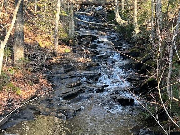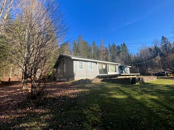 Rare Walden 135 acre homestead with single story 2 bedroom cathedral ceiling home. Built in the early 1980's the freshly painted home has a large mud room with root cellar below, a center island kitchen w/exposed beams, cabinets and counters along 3 walls, and an eating area w/ wood stove on the gable wall. There is also an office/breakfast room in this wing. Next is the 22 x 27 oak fl. great room with cathedral ceiling, huge brick hearth along back wall with wood stove. Book shelves are along westerly wall and large sliding glass door to deck overlooking the pond and small wetlands beyond. There is a lovely 3/4 bath with marble topped sink which continues to the main floor master bdrm. with exposed beams and large walk-in closet. Follow the stairs from the great room to the partially finished basement with large central den, bedroom, 3/4 bath, laundry room with newer on demand water heater, and 2 large storage areas and storage closet with shelves. Bulkhead as well. Just east of the home is a year round stream that cascades by the home. A truly wonderful sight and sound. As you enter the driveway there is a saltbox style 3 bay single story garage with power and concrete floor. The property extends each side of Noyesstar Rd with just under half on the house side. Property also fronts on Stevens Hill Rd. There are approximately 4 acres of fields, 8 acres of over grown fields and pasture, 20 acres of hardwood. about 100 acres of mixed woods and 8-10 acres of wetlands.