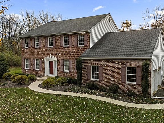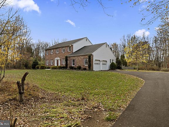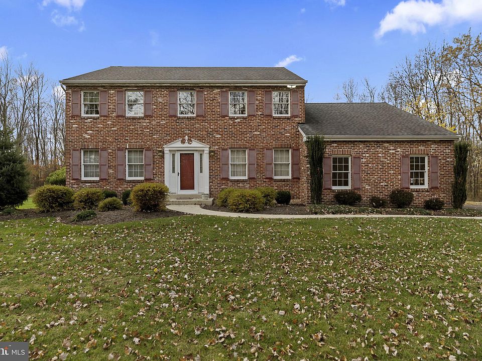 Tucked away on a secluded flag lot within the award-winning Central Bucks School District, this timeless 4-bedroom, 2.5-bath Center Hall Colonial offers the perfect blend of privacy, comfort, and classic Bucks County charm. Set on 4.5 acres of serene, wooded surroundings, the property feels like a private retreat yet remains just minutes from shopping, dining, and major commuter routes. Step inside to a bright and welcoming foyer that opens to spacious formal living and dining rooms, both featuring gleaming hardwood floors, crown molding, and chair rail accents. The inviting family room, complete with a gas fireplace, creates a warm gathering space with easy access to the backyard—perfect for entertaining or quiet evenings at home. The sunlit kitchen and breakfast room overlook the backyard and offer plenty of space for everyday meals and connection. Upstairs, you’ll find four generously sized bedrooms, including a private primary suite, along with a full hall bath. Outdoor living truly shines here. The professionally landscaped grounds, with especially mature landscaping in the rear, surround a sparkling in-ground pool, creating a tranquil setting for summer enjoyment. Additional highlights include a full unfinished basement, a two-car side-entry garage with attic storage, and a long driveway with plenty of parking. Recent updates provide peace of mind for years to come: Brand new HVAC system (2025) Roof (2015) Water heater (2020) This beautiful property combines classic Colonial design, modern updates, and a peaceful, secluded setting—a rare find in the heart of Warrington.