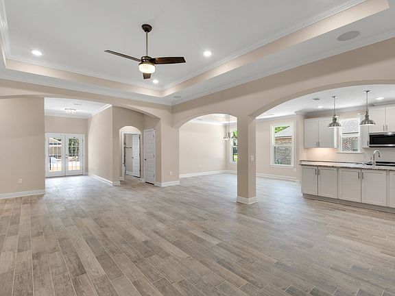 Welcome to Ten Mile, a charming community in Milton, FL. This community boasts 3-sided brick homes with attractive Hardie accents on the front elevation. The Sanibel plan is just one of the buildable options and offers 3 bedrooms and 2.5 baths, with a total of 2,275 square feet of living space. As you step inside the home, you'll be greeted by an inviting foyer space with 2 story ceiling height. The great room features an impressive 11' tray ceiling, adding an elegant touch to the room. The kitchen is a standout feature with a large island that's complemented by granite countertops. It's well-equipped with stainless steel appliances and stylish shaker style cabinets. There's also a convenient walk-in pantry for all your storage needs. Right off the kitchen, you'll find a lovely breakfast area with two large picture windows, allowing an abundance of natural light to flood the space. The owner's suite is a haven of relaxation, complete with a garden tub, a separate custom tile shower, a double vanity with granite countertops, a water closet for added privacy, and a walk-in closet. It's important to keep in mind that the photos are for marketing purposes only and colors, finishes, and layout may vary. The price is subject to change without notice, so be sure to verify the current pricing. The provided information is deemed correct, but it's always good practice for buyers to verify details