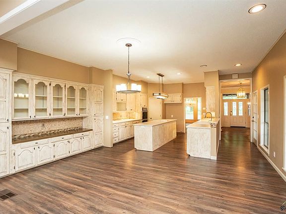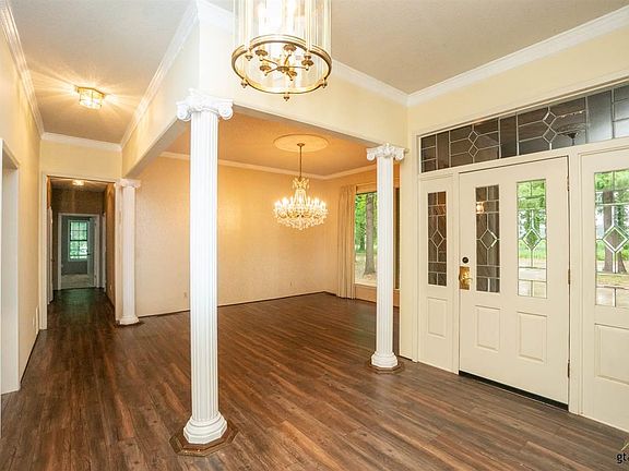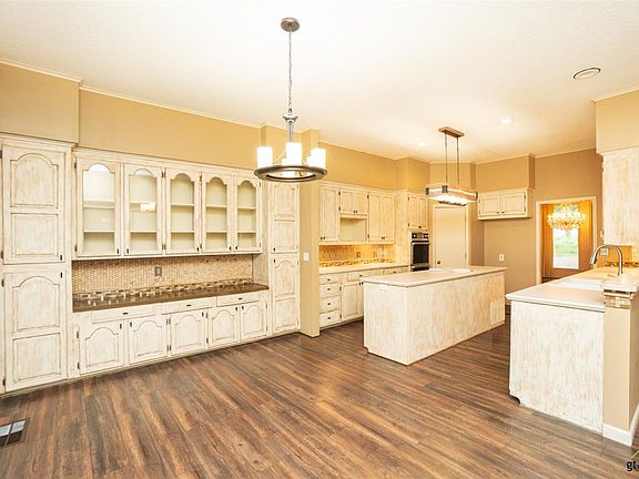 This gorgeously unique home with over 4000 sq. ft is the epitome of a "dream home." Situated on 1.5 acres, including the point of a beautiful private lake, the property is just as breathtaking as the inside of the home. Once you step inside, the exquisite details are the first things to catch your eye; from a polished marble fireplace and elegant chandeliers to huge windows that allow for tons of natural light and a direct view to the covered back porch and in-ground swimming pool... there is so much to see. With 5 bedrooms (including 2 master suites), 4.5 baths, 2 living areas, updated kitchen, formal dining room, study/office, safe room downstairs, and massive upstairs bonus room ... This house has everything! This property won't last long at this price! Schedule your viewing TODAY!!! Additional acreage available for purchase!