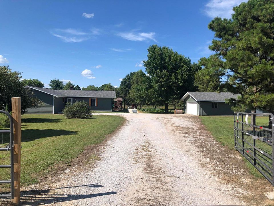 Country living at it's best! This mini-farm is located within minutes from Carl Junction! This 8.36 acre property has a beautiful setting with evergreens surrounding the entire property giving you privacy. You will also find a small barn/animal shelter, continuous live animal waterer, a roomy chicken coop, fully fenced and cross-fenced for your farm animals, wild blackberry bushes, garden plots, abundant wildlife and an in-ground storm shelter. The remodeled home includes 4 bedrooms and 3 full bathrooms, a spacious kitchen with plenty of counter-top space and storage, cozy living room with wood burning fireplace and beautiful laminate flooring, large master suite with walk-in closet and attached bathroom. Oversized two-car detached garage with storage space in the back or an area for a