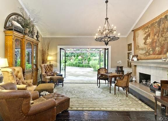 RARE ONE-STORY Nellie Gail Ranch estate settled on an acre of beautifully landscaped, park-like grounds. Generously proportioned at approximately 3,600 sqft, the 3-bedroom, 3.5 bath home showcases impressive volume ceilings, crown molding, espresso-colored wood floors with inlaid tile, an office area in the hallway with built-in Miele dual coffee maker, wainscoting, dual leaded-glass entry doors, illuminating clerestory windows, a formal living room with elegant fireplace, and a formal dining room with wrought-iron dividers and coffered ceiling. A full wetbar in stacked stone and distressed wood enhances an entertainment room with built-in speakers. A bay-windowed breakfast room complements the upgraded kitchen, which displays custom cabinetry, granite countertops, a six-burner gas range, double stainless steel ovens, and built-in refrigerator. The luxurious master suite is warmed by a corner fireplace and hosts a lavish bath with extensive custom tile work, a sunken tub, and a large walk-in shower. Enduring style continues outdoors in the gorgeous rear yard with shady dining and entertaining areas, a gazebo, fire ring, fire place and sitting ares, built-in barbecue and lighted sports court. Sellers have plans for approx 450 sqft guest quarters.