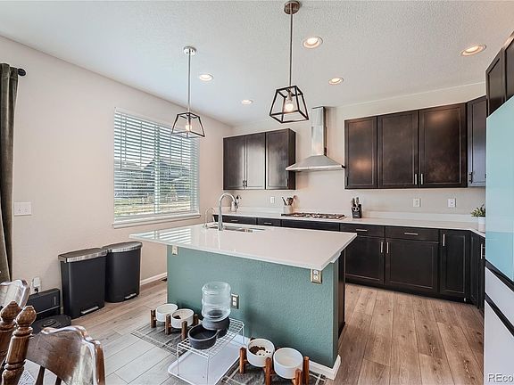 This lovely newer home was built in 2021 in the desirable Southshore community! It is modern, private and includes wonderful upgrades! Enjoy the quiet of the peaceful yard, which backs directly to a lush greenbelt, this home offers no rear neighbors and open views. Step inside to an open main floor with 10-foot ceilings and luxury vinyl plank flooring throughout. The spacious kitchen is outfitted with dark maple cabinetry, quartz countertops, stainless steel appliances (including double ovens, a gas cooktop, and French door refrigerator), and a large island featuring a touchless faucet, reverse osmosis system, and pendant lighting. A dedicated dining area flows seamlessly into the great room, which features a gas fireplace, tile surround, and a built-in wiring pass-through with TV mount. Upstairs, the primary suite offers a coffered ceiling, walk-in closet, and a luxurious 5-piece bathroom with dual vanities, quartz counters, and tile flooring. Two additional bedrooms and a full bathroom provide space for family, guests, or a home office. The laundry room includes a washer, dryer, and pedestals for added convenience. The unfinished basement offers extra storage or room for customization. Step out through the kitchen's sliding door to a fenced backyard with open space behind perfect for quiet evenings or weekend relaxation. Details: 3 bedrooms, 2.5 bathrooms Washer/dryer included Central A/C and heat Attached 2-car garage Tenant responsible for utilities Pets considered with additional deposit Located in a vibrant, amenity-rich neighborhood with access to parks, trails, and community pools. Tenant responsible for utilities Pets considered with additional deposit