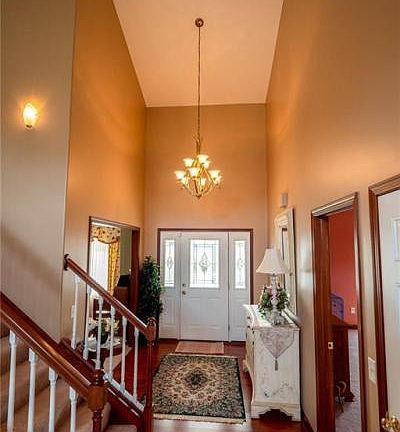 Solid (One-owner) home in Mystic Pointe neighborhood built by Jim Davies Integrity Homes. Enjoy the tranquility outside with the professional landscaping on your back deck with retractable awning OR large covered front porch. Step inside the dramatic 2 story foyer and notice the beautiful room to your right that could be used as an office, dining room, or second living room. Continue on into the gorgeous great room with vaulted ceilings and stone fireplace that opens to extra large kitchen that includes beautiful maple cabinetry, corian countertops, and a large pantry. 1st floor living at its finest - Large master bedroom with vaulted ceilings and master bathroom with whirlpool tub, separate shower, two sinks, and walk in closet. A Jack & Jill bathroom joins the two generously sized bedrooms on the second floor. Basement is dry, unfinished with large windows, tall ceilings, and plumbed for a full bathroom.