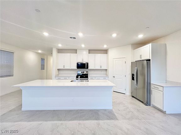 NEW house w/ 5BR+LOFT+3FULL BA (1BR+1BATH downstairs) & located @ Cul-De-Sac lot & growing Inspirada Master-Plan Community featured multiple parks, sports fields & walking trails; Upgrades include: 9" ceiling & white mission railing @ 1st floor; Satin Nickel pulls @ cabinets/drawers; 42" white cabinets w/ rollout tray, quartz countertops, enlarge island, SS appliances & undermount single basin sink @ kitchen; Separate tub & shower w/ quartz surrounds, 2 sinks, big window, separate water closet, large walk-in closet & double entry doors @ primary suite; Ceiling fan, Flat-Panel TV Prewire & 4 recess lights @ living rm; 2 sinks, window & separate water closet @ 2nd bath; Undermount sinks & quartz countertop @ all baths; Tiles t/o 1st floor except bedroom & all wet areas upstairs; Upgraded carpet pads; Satin Nickel door Hardwares; Cordless blinds; Soft water loop, home EV charging station prewire, tankless water heater & quiet opener @ finished garage; Covered patio & BBQ gas stub @ back.