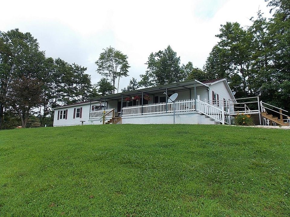 This nice 4 bedroom 2 bath home sits high on the hill and features an open floor plan with a large living room, dining area, nice open kitchen with appliances, computer room, master suite with a walk in closet and bathroom with a garden tub and stand up shower, three more nice sized bedrooms, a hall bathroom, and a large laundry room! Other features include a heat pump, replacement windows & newer roof (2017) covered concrete front porch, rear porch, detached carport, and a large outbuilding! All of this sitting on a 1.0 acre lot featuring privacy, a long private driveway, and close to the Blue Ridge Parkway!