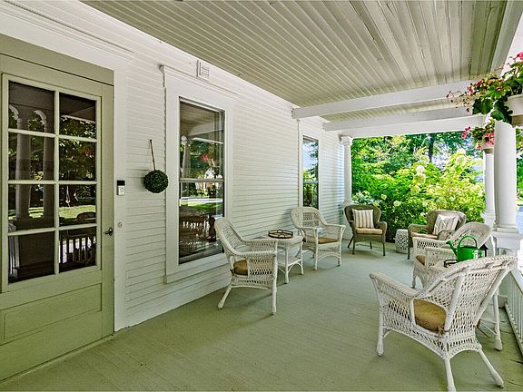 This Queen Anne Victorian home, set in the picturesque Village of Charlotte, seamlessly blends historic charm with modern comforts. Built in the late 1800s, it showcases beautiful original woodwork, intricate architecture, and hardwood floors throughout. The first floor features a grand foyer, formal dining room, parlor, spacious kitchen, cozy den, sunroom, office, and mudroom, offering ample living space. The kitchen boasts energy-efficient appliances, soapstone countertops, and a large breakfast area perfect for gatherings. On the second floor, an open hallway leads to a comfortable primary suite and bath along with three additional bedrooms and guest bath. A versatile third-floor room offers the potential for a den, office, or extra bedroom. Step outside to enjoy the screened porch in the mornings or relax on the north porch while taking in stunning sunsets. With entertaining in mind, the property features a heated pool and a generous outdoor patio area. The carriage barn provides parking for two cars, with additional storage space on both levels. Located on iconic Greenbush Road, this home is just minutes from the Old Brick Store, Charlotte Library, Senior Center, and a short 10-minute drive to Charlotte Beach, making it an ideal combination of village living and historic elegance.