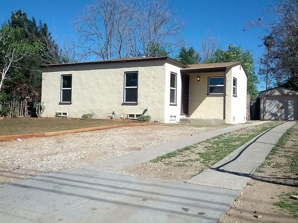Charming home located in the eastside community of Riverside. Great convenient location with equal distances from UCR and RCC. Property has bee extensively renovated and boosts Fresh Interior and Exterior paint, Laminate Floors, New Dual Pane Vinyl Windows, New Kitchen cabinets with peninsula, Granite Counter tops, Raised panel doors, New Carpet, New Bathtub and tile surround. New Water heater and lighting features. The home offers 2 bedroom and 1 bath, Formal Dining area and indoor Laundry, in addition there is a 1 bedroom permitted addition (included in the sqft) detached from the home, great for a future workshop, genius Lab, man cave or whatever your imagination can ponder. The lot offers plenty of space to park, and RV, Boat, or possible extend the home. This is the only stop you have to make.