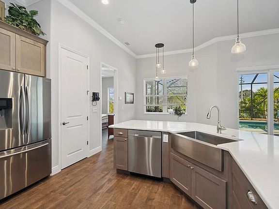Nestled in an exclusive gated community, this immaculate 4-bedroom, 3-bath pool home offers the epitome of luxury living. As you enter, the seamless tile flooring leads you through the open spaces with high ceilings and abundant natural light pouring in from impact windows. The heart of the home is the large gourmet kitchen, adorned with quartz countertops, stainless steel appliances, and ample storage. It's a chef's dream, perfect for entertaining. The first-floor primary bedroom suite exudes tranquility, complemented by a spa-like ensuite bathroom and a spacious walk-in closet. The second bedroom feels like a private suite, complete with its own bathroom. Step outside to the backyard oasis where a sparkling salt-water pool awaits, surrounded by lush landscaping for ultimate privacy. This like-new home boasts modernity and sophistication, evident in every detail. The recently replaced roof in 2023 ensures worry-free living.