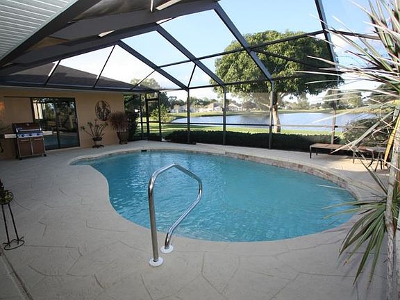 HUGE LAKE VIEW 3 Bed/2 ½ Bath/2 Car garage POOL HOME in desirable Deed Restricted Deep Creek. Home is located in a very well maintained, quiet neighborhood on Lake Bengal surrounded by nature with plenty of privacy. This impeccably maintained property is extremely spacious offering an AIRY OPEN FLOOR-PLAN with split bedrooms, great for family and entertaining. Interior features include VOLUME CEILINGS, Extra LARGE KITCHEN WITH a breakfast bar and endless counter space, new STAINLESS APPLIANCES, DOUBLE OVENS, TRASH COMPACTOR, TILE BACKSPLASH, TILE/LAMINATE flooring, POCKET SLIDERS, TWO FULL BATHS and an ON-SUITE ½ BATH connected to the guest bedroom for added privacy. The master features WALK IN CLOSETS, DUAL SINKS, JETTED GARDEN TUB, LARGE WALK IN SHOWER WITH UPGRADED GLASS ENCLOSURE, and built in WOOD SHELVING. This home also includes a NEWER A/C SYSTEM (05'), OVERHEAD WATER PLUMBING (11'), and a LAKE FED IRRIGATION SYSTEM. Exterior features include a cozy COVERED LANAI with your PEBBLE TEC SURFACED POOL, and mature TROPICAL LANDSCAPE with CONCRETE CURBING. Enjoy the nearby playground with tennis courts and the Deep Creek Golf Course a couple of miles down the road. You'll love the convenience to I-75, restaurants, grocery stores, Wal-Mart, etc.....all of which are less than 5 minutes away.