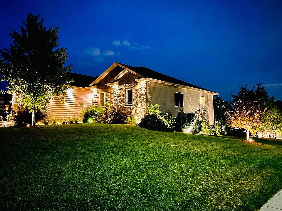 Executive ranch loaded with features including an open floor plan- finished basement with over 3500 sqft finish. 5 beds, 4 baths, daylight windows in basement. Beautiful kitchen with customized pantry, granite counters. Hardwood flooring throughout. First floor laundry. Large master bedroom and bathroom with jetted tub, over-sized tile rainfall shower, twin vanities, separate water closet, "California" walk-in closet. Huge recreation room in basement with 100" HD Bose projection system, wet bar, tanning bed room, Huge 3 car, heated garage w/ durable epoxy floor, built-in blue tooth speakers, Smart garage door. Deck with recessed hot tub, built-in blue tooth speakers. Massive kids play set w/ commercial rubber mulch. Large lot with steel fence, 10-zone irrigation. Home and landscaping beautifully illuminated by outdoor lighting system. Other features include quartz counters in all bathrooms and basement bar, monitored by a 8 security camera system.