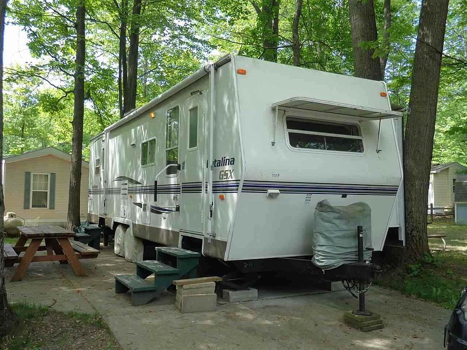 Lot has a shed and can be sold with or without the camper. Great getaway with lots of maintenance free features! Association Dues are $300 A Quarter and includes Private Club House with laundry facility, exercise room, gathering room with fireplace and kitchen! Indoor pool and hot tub! Association dues cover cable, mowing, plowing and grounds care. Property Owners also have access to 2 bath houses, pool, gorgeous grounds and fishing pond! Sandy Oaks has storage for boats and snowmobiles for property owners! Close to town, lake and trails! Great getaway, affordable and easy!
