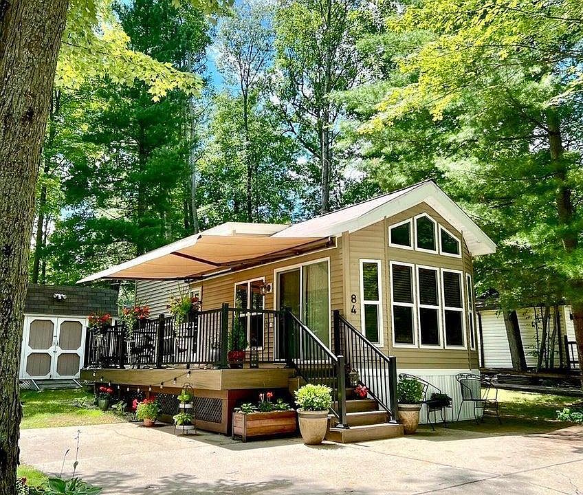 Looking for the perfect Up North getaway with fantastic amenities? This is it! This beautifully maintained property is located in the sought-after Phase One of Sandy Oaks Park, offering the charm and comfort of a true home away from home. Inside you will find a cozy main floor bedroom, while the loft features a second bedroom, an additional living space and extra storage. The property also includes a newer shed, ideal for storing all your outdoor gear and toys. Located in Sandy Oaks Park, this home offers a host of conveniences. Association fees are just $126 per month for dues and fees, which include water, Wi-Fi, cable, lawn care, snow removal, and access to the clubhouse with its many fantastic features. Don't miss out on this incredible opportunity! Golf Cart can be included.