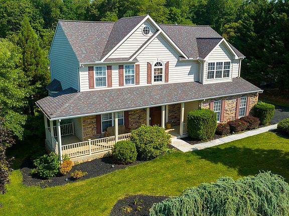 Situated on over half an acre with a private tree lined backyard featuring an inground swimming pool! Swimming pool features a patio surround, brand new liner, diving board, and is heated! The rear deck is brand new composite. The interior features a bright and open layout with 9+ft ceilings. Directly off of the two-story foyer is an open living and dining room area - perfect for entertaining! The chef in the family will love the gourmet kitchen with double ovens, walk-in pantry, L-shaped center island with a sink, and granite countertops. The kitchen flows openly into the the family room which is highlighted by a gas fireplace. A breakfast room offers plenty of natural lighting and leads directly out to the rear deck. At the end of a long day, retire to the master suite with a dual sided fireplace in the bedroom and bath for an extra cozy atmosphere. Three additional bedrooms and full bath complete the upper level. The lower level can easily be finished featuring a daylight walkout basement. Wrap around covered front porch has brand new maintenance free railings. Easy commute to I-83 and MD. Plenty of room for the growing family!