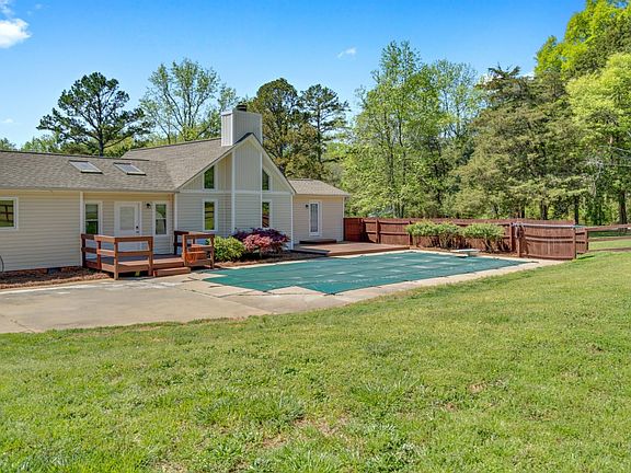 Welcome to this charming 3 bed/2 bath home on over an acre and a half in Rock Hill, SC. with no HOA! Special features include: laminate wood floors, vaulted ceilings and a floor to ceiling stone fireplace in the living room, tons of natural light, a loft for extra entertaining space, updated bathrooms with newer vanities and tile floors, and an updated kitchen with center island, modern cabinets, and updated lighting fixtures. The owner's suite features an ensuite bathroom and private access to the back deck. Two secondary bedrooms share access to a full hall bathroom. Enjoy time outside overlooking the spacious and flat backyard on the newer back deck, and time in the in-ground pool! This home also has a detached two car garage with loft for storage or a workshop. There is also a storage shed on the property for all your outside equipment. This home is country living at it's finest, yet is conveniently located near shops, restaurants, and I-77.